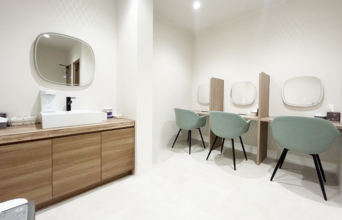 女性専用のパウダールーム設置。教習終わりにささっとメイク。女性に嬉しいアメニティもご用意しております。
