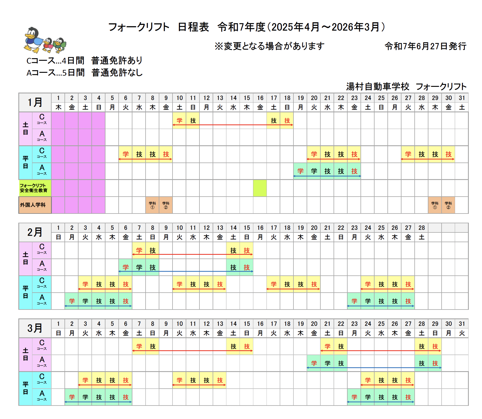 フォークリフト講習2026年1月〜3月スケジュール公開
